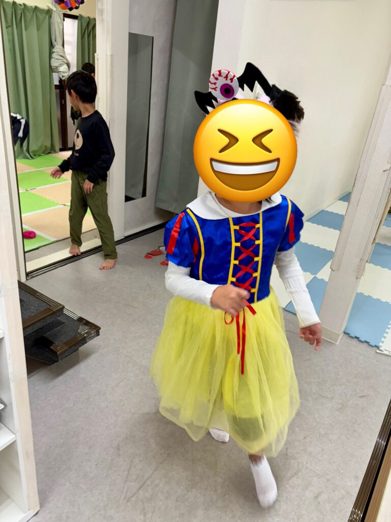 自宅から持参したお気に入りの衣装を着る子もいれば、メルシーの衣装コーナーから選んで変身する子も。