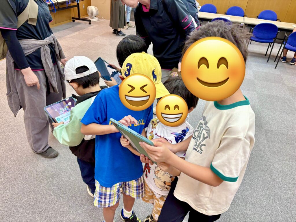 「昔のマンガのキャラクターなんだけど、みんな知ってるかな?」とスタッフが声をかけると、子どもたちは興味津々でのぞき込んでいました。