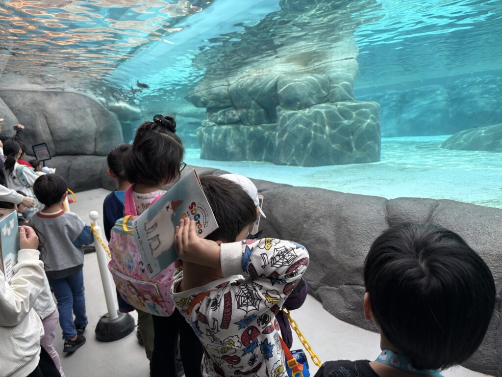 ペンギンやアザラシが頭上をすいすい泳ぐ姿に、「近い!」「かっこいい!」と目を輝かせていました。
