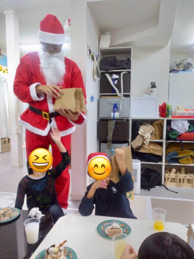 その最中、サンタさんが登場し、1年間お利口に過ごした子どもたち一人ひとりにプレゼントを届けてくれました。