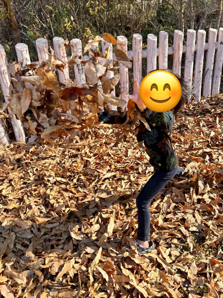 みんなで落ち葉を投げ合ったりと、冬ならではの遊びを満喫しました。