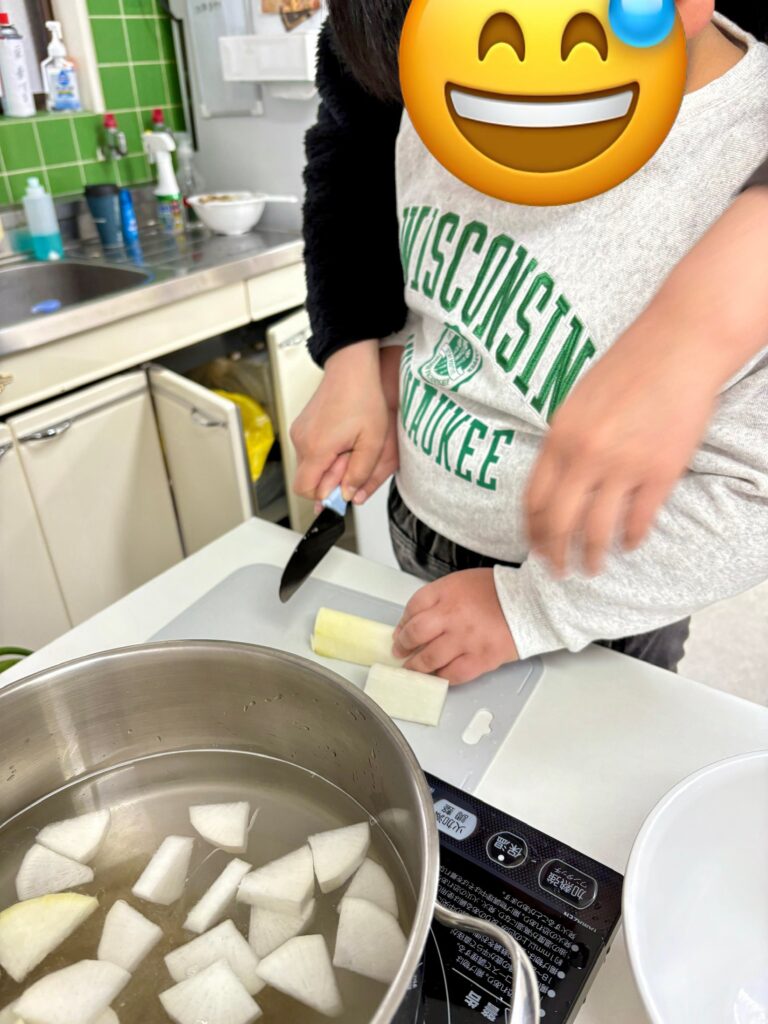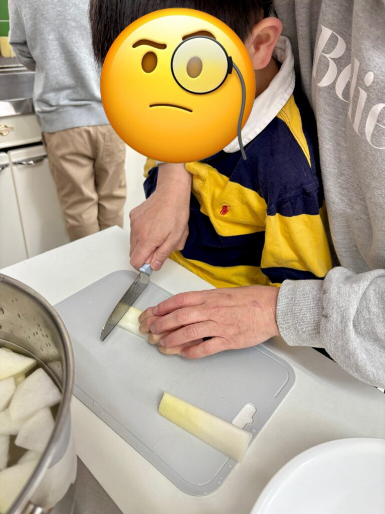 この日は、冬の寒い時期にぴったりの豚汁作りに挑戦しました。