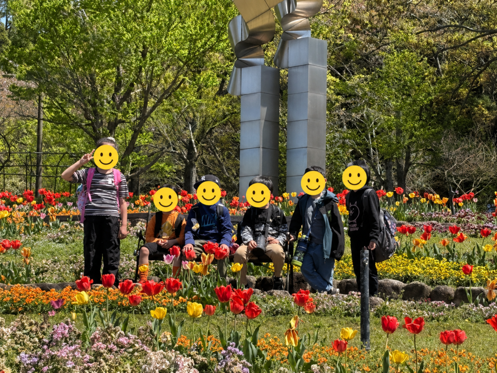 園内にはたくさんの花や植物があり、歩きながら自然に触れることができました。中でも色とりどりのチューリップが見頃を迎えており、「きれい!」と声を上げる子どもたちの姿が印象的でした。